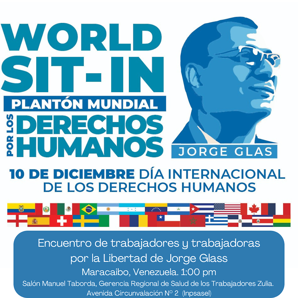 En el caso de Venezuela, al no existir delegación diplomática en Ecuador tras la ruptura de relación, la Coordinadora Autónoma e Independiente de Trabajador@s (CAIT) y la Escuela de Formación Hugo Chávez se a esta campaña mediante el Encuentro de Trabajadores y Trabajadoras por la Libertad de Jorge Glass, el cual se realizará en Maracaibo, Estado Zulia, a la 1pm, en el Palacio de Eventos, Salón Manuel Taborda de la Gerencia Regional de Salud de los Trabajadores Zulia (Inpsasel), ubicada en la Avenida Circunvalación N° 2.
