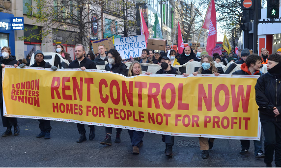 LRU dijo que hasta 500 personas marcharon por el centro de Londres el sábado, en uno de los días de compras más grandes del año, para protestar “contra el aumento vertiginoso de los alquileres” y la “explotación” de los inquilinos.