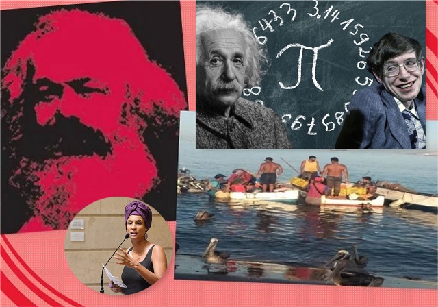 Imágenes alusivas a las efemérides destacadas: Marx, Einstein, Número Pi, Hawking, Mariele, pescadores venezolanos