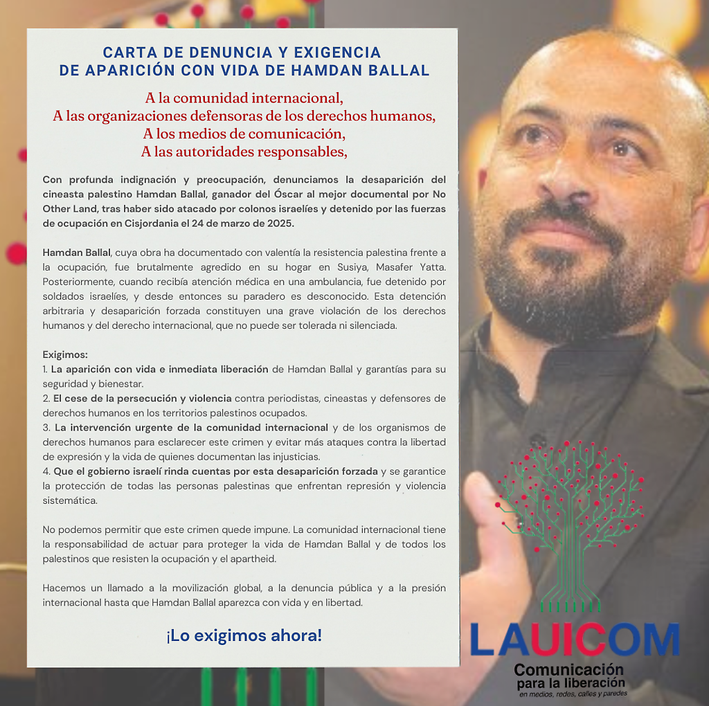 Exigen la liberación del documentalista Hamdan Ballal detenido por Israel