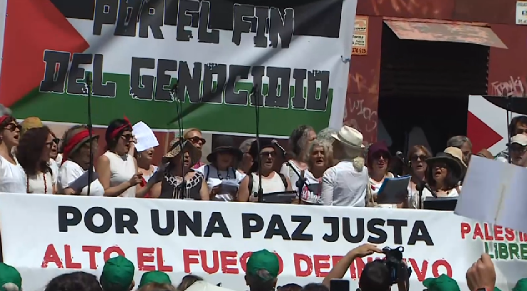 «Por una paz justa. Alto el fuego definitivo. Ni terrorismo ni genocidio» es el lema elegido por la plataforma ‘Parar la Guerra’ para la concentración, organizada junto al Museo Reina Sofía y a la que se han sumado personalidades de la cultura como Fernando Colomo o Juan Echanove.