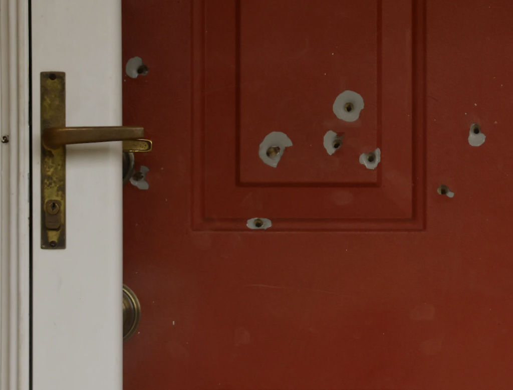 Los Hoffman fueron atacados primero en su casa de Champin la madrugada del sábado. Tras enterarse del tiroteo, la policía del cercano Brooklyn Park envió agentes de patrulla a revisar la casa de los Hortman. La denuncia indica que los agentes de policía de Brooklyn Park llegaron justo a tiempo para ver a Boelter dispararle a Mark Hortman a través de la puerta abierta de la vivienda. Indica que intercambiaron disparos con Boelter, quien huyó al interior de la vivienda antes de escapar del lugar.