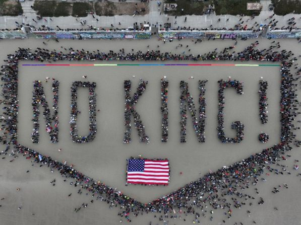 No Kings fue un día nacional de desafío. Desde las calles de la ciudad hasta los pueblos pequeños, desde las escalinatas de los juzgados hasta los parques comunitarios, tomamos medidas para rechazar el autoritarismo y mostrarle al mundo cómo es realmente la democracia", se leyó en el sitio web de No Kings. "La bandera no pertenece al presidente Trump. Nos pertenece a nosotros. No estamos viendo cómo sucede la historia. La estamos creando".