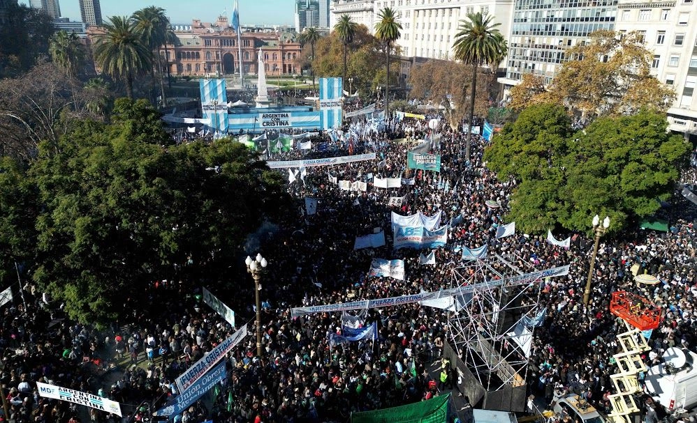 19 de junio de 2025.- En una histórica marcha pacífica, calculada en más de medio millón de personas sólo en esta capital –sin contar los miles en las provincias– la emoción estalló ayer en la multitud cuando se escuchó la voz de la ex presidenta Cristina Fernández de Kirchner (2007-2015); en un mensaje desde su casa, donde cumple prisión domiciliaria y condenada además a proscripción política de por vida, la ex mandataria renovó las esperanzas populares al asegurar: vamos a volver, vamos a volver, pero con más sabiduría y con más unidad; y agregó: donde me toque estar, en la trinchera que sea, voy a seguir haciendo todo lo que esté a mi alcance para estar con ustedes.