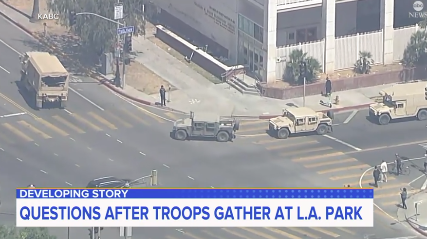 La operación, que incluyó a 90 soldados armados y 17 Humvees militares, desplazó un campamento de verano, según la alcaldesa de Los Ángeles, Karen Bass, quien afirmó que el único objetivo de las operaciones parecía ser "una agenda política para incitar al miedo y el terror".