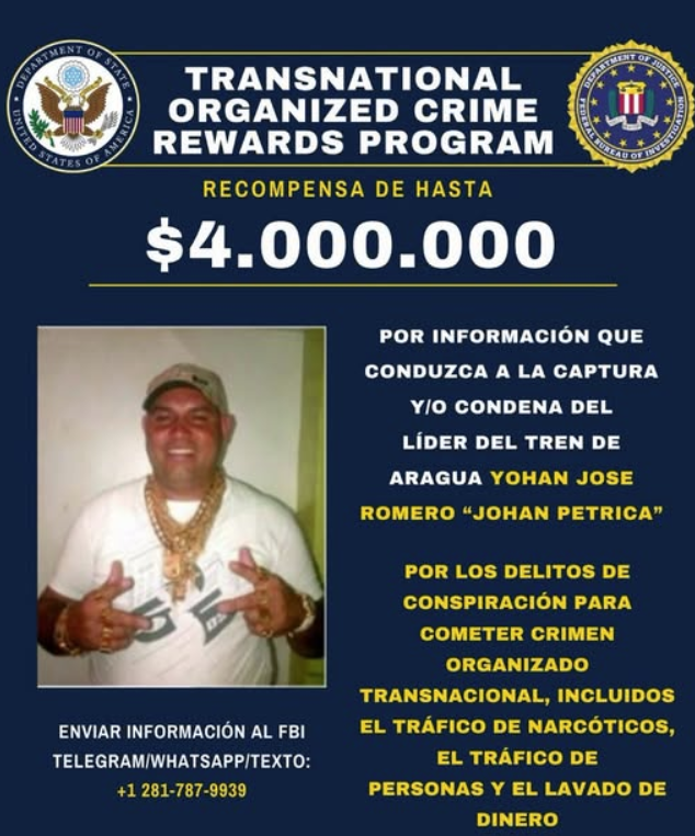 Estados Unidos ofrece recompensa por la captura de presunto líder de "El Tren de Aragua"