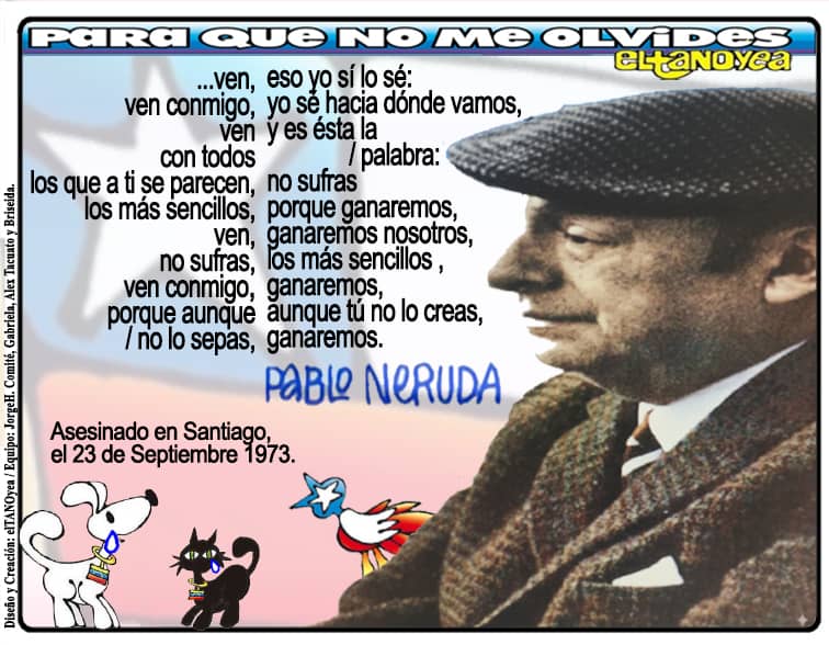 Así y todo la poesía de Neruda sigue siendo patrimonio de los pueblos del mundo que recuerdan esos versos donde dijo “tengo un pacto de amor con la hermosura / tengo un pacto de sangre con mi pueblo..!”