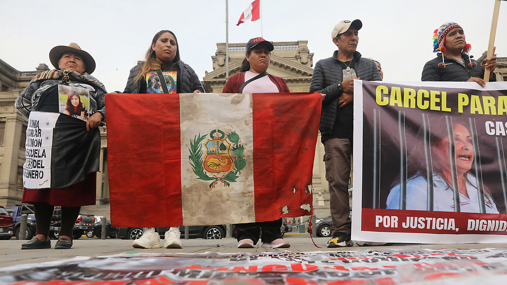 "Han vacado a Dina Boluarte que es también una asesina y en sus manos corre sangre de más de 50 de nuestros hermanos peruanos. Ahora han puesto al que era el presidente del congreso, que también es un violador", se lamenta.