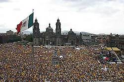 López, convocó a 200.000 de sus seguidores que allí se congregaron, a una nueva concentración en el Zócalo el próximo domingo y pidió que se mantenga el espíritu pacifico de las mismas.