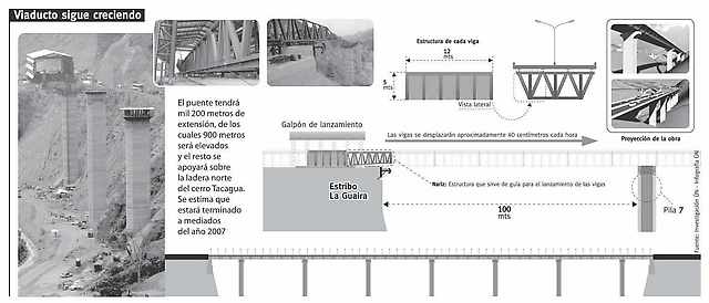 De allí que este desplazamiento no se podrá apreciar a primera vista. Además es necesario alargar más el galpón de lanzamiento, 30 metros, para poder seguir engranando las vigas, que pronto llegarán por vía terrestre desde Ciudad Guayana.