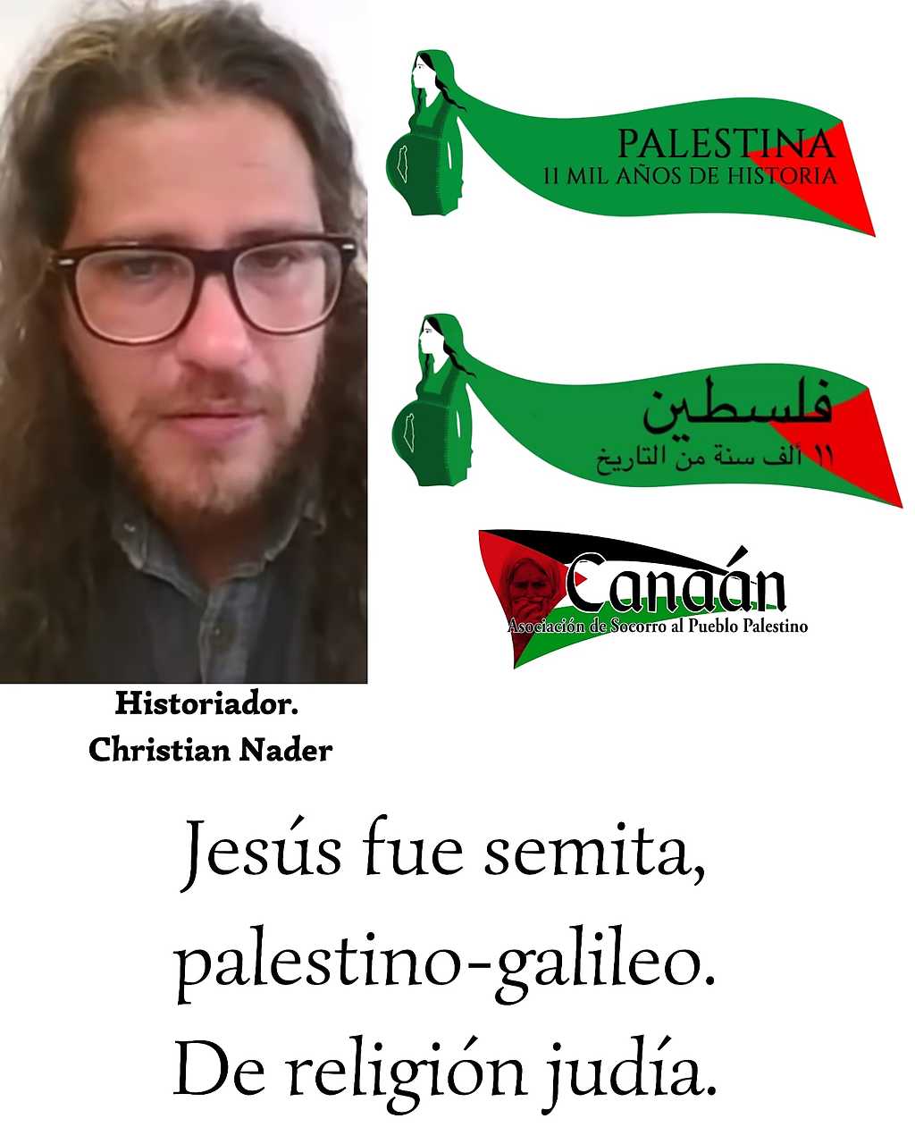 El historiador hace una cronología de la historia del pueblo nativo semita palestino y muestra que la icónica figura de Jesús es parte de la historia ancestral palestina.