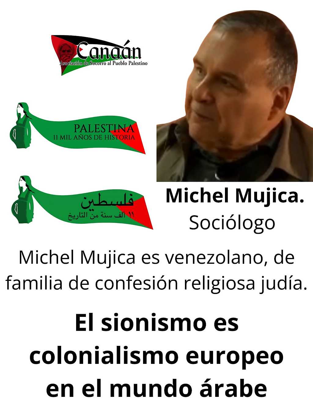 Mujica como estudioso del sionismo sostiene que el sionismo es colonialismo europeo en el mundo árabe.