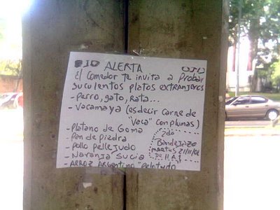 A pesar de eso, la protesta del lunes tuvo cierto éxito. Y este martes, los afiches arreciaron. Se jactaron de la sensacional victoria lograda el día anterior, e intensificaron las mentiras: se decía que los perros callejeros han desaparecido de la universidad porque los sirven en el almuerzo, se burlaban de los platos de comida, se pedían que sirvieran frituras, etc.