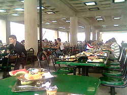 Hoy la cola en el comedor era inmensa. Tardamos más de una hora en poder entrar, para entonces encontrarnos con todas las mesas llenas de bandejas sucias y llenas de comida, dejadas así por los estudiantes que comieron minutos antes que nosotros.