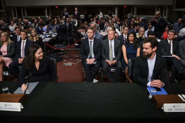 Sheryl Sandberg, directora de operaciones de Facebook, y Jack Dorsey, CEO de Twitter, comparecieron en septiembre de 2018 ante el Congreso estadounidense.