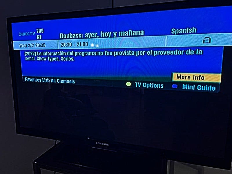 La operadora venezolana de televisión satelital por suscripción SimpleTV, de capital privado chileno, este sábado 5 de marzo a la medianoche se quedó sin la señal del canal estatal ruso Russia Today (RT), que se encuentra en una polémica por las acusaciones de países de Occidente de que transmite propaganda a favor de la invasión a Ucrania.