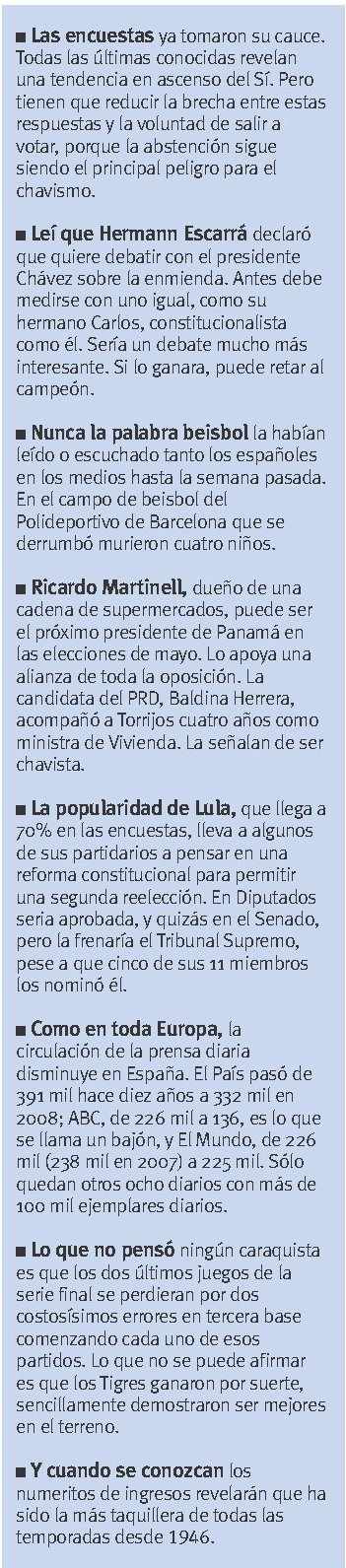 Algunas cifras son bastante reveladoras. En esta década han disminuido los índices de desigualdad social; en 2002, por ejemplo, 20% más rico de los venezolanos obtenía 54% del ingreso nacional, mientras que en 2008 ese mismo 20% se apoderó de 46,7%, es decir, que bajó 7,4%; la situación de la mayoría, y entre ellos de 20% más pobres, mejoró sustancialmente. Hace 10 años, en 1997, la pobreza era de 54,5%, en el 2002 había subido a 62,1%, pero el año pasado estaba en 31,5%, y la pobreza extrema pasó de 28,8% en 2000 a 9,1% en 2008.