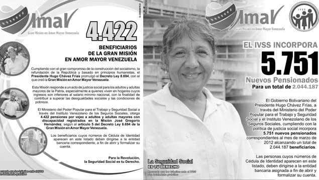 Listas de nuevos pensionados IVSS del 19-02-2012 y de la Gran Misión en Amor Mayor Venezuela