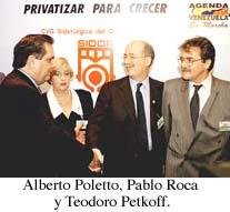 Aquí en esta fotografía se puede ver a Petkoff y Poletto en plena euforia neoliberal privatizadora, entregando SIDOR a un consorcio privado internacional del que formaba parte la Sivensa de Pedro Carmona y la familia Machado de Maria Corina, así como la transnacional Ternium del multimillonario Pablo Rocca. Al ex ministro de Cordiplan y al antiguo Presidente del Fondo de Inversiones se les ve la cara de satisfacción por el éxito de la operación, posando bajo el slogan de su política económica: “privatizar para crecer”, que llevó al país a una de sus crisis económicas y sociales más profundas de la segunda mitad de siglo XX.
