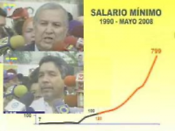 No obstante, nada dijeron y ningún periodista les preguntó, el por qué por más de 14 años el salario mínimo nacional estuvo congelado en cero, sin aumentos de ningún tipo, en la “etapa democrática” del Pacto de Punto Fijo. Igualmente, tampoco hicieron mención alguna al hecho cierto de que durante los últimos 10 años, los porcentajes del Salario Mínimo Nacional han venido creciendo sostenidamente, durante el Gobierno Bolivariano.