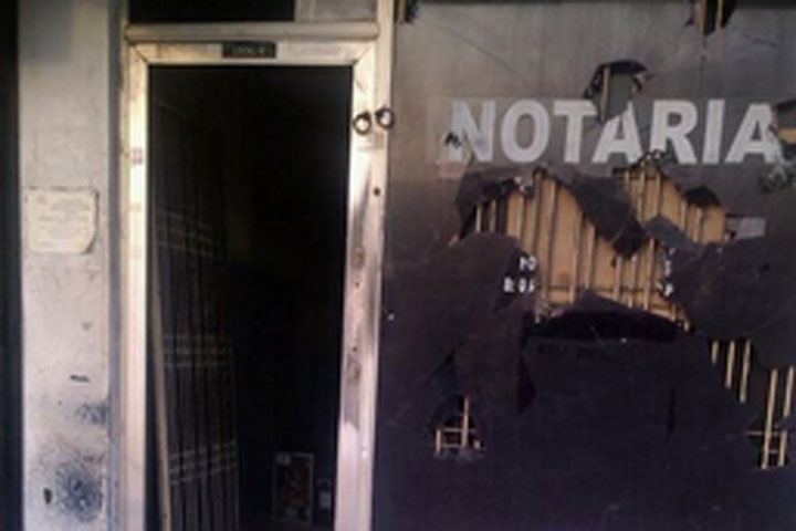 06-03-14.- Las barricadas que se levantaron este miércoles frente a Residencias Palaima, avenida Guajira, al norte de Maracaibo, y que generaron un caos cuando efectivos de la Guardia Nacional Bolivariana (GNB) enfrentaron a los manifestantes en intento de desbloquear las calles, aún persisten este jueves aunque sin vecinos protestando. La Notaría Pública Quinta de Maracaibo, ubicada frente a la zona residencial, quedó destrozada y saqueada como resultado de la situación.