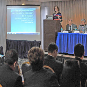 23-05-14.-El tema electoral debe estar presente en las mesas de diálogo entre Gobierno y oposición, señaló ayer Jennifer McCoy, directora del programa para las Américas del Centro Carter. En declaraciones a los medios de comunicación luego de la presentación del informe sobre los comicios presidenciales del 14 de abril de 2013 (lo que se hizo en el contexto del seminario Democracia y procesos electorales), McCoy ratificó que “ojalá que puedan incluir el tema electoral dentro de esos espacios de discusión y diálogo”.
