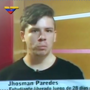 Caracas, 19 de septiembre de 2014) El Ministerio Público presentará en las próximas horas ante el Tribunal 6° de Control del área metropolitana de Caracas, a Jhosman David Paredes Rolón, alias "el Pecas" (21), estudiante del 5° semestre de Diseño Gráfico en el Instituto Universitario Antonio José de Sucre, en el estado Táchira, por su presunta vinculación con los planes conspirativos por los que se encuentran privados de libertad Lorent Gómez Saleh (26), Gabriel Valle (27) y Ronny Navarro (32).