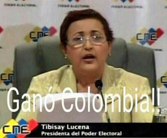 El pasado domingo, Capriles difundió en su cuenta en Twitter, una fotografía de la presidenta del poder electoral, anunciando los resultados del partido Colombia-Venezuela, en el que la funcionaria anuncia al vecino país como vencedor.
