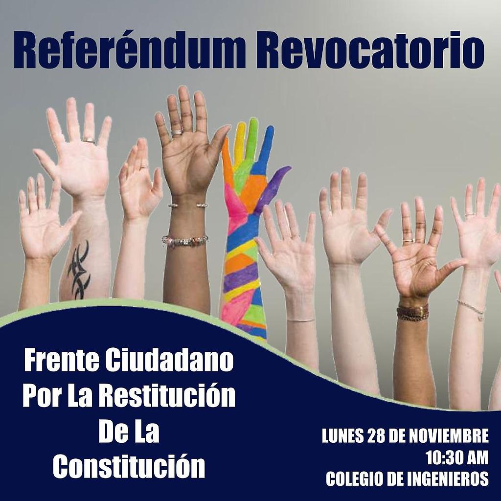 Con el objeto de rescatar nuestros derechos y obedecer el mandato constitucional, hemos convenido en conformar un Frente Ciudadano para la Restitución de la Constitución, cuya primera acción será impulsar la realización del Referéndum Revocatorio (RR) antes del 10 de Enero del 2017.