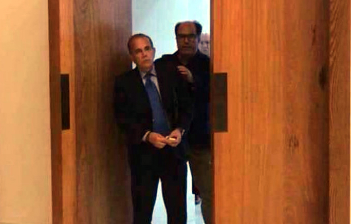 Mostró la fotografía ampliamente difundida en las redes sociales donde se observa a Julio Borges y Manuel Rosales entrando al salón donde se desarrollaron las dos primeras reuniones en República Dominicana, lo cual evidencia las mentiras