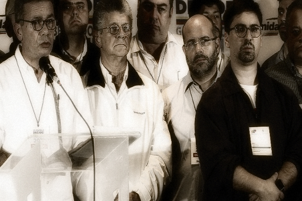 La declaración fue leída por Gerardo Blyde, alcalde de Baruta, y Jefe del Comando de Campaña de la MUD, quien estuvo acompañado de Lilian Tintori, Freddy Guevara, Henry Ramos Allup, Liliana Hernández y Jesús "Chuo" Torrealba, entre otros.