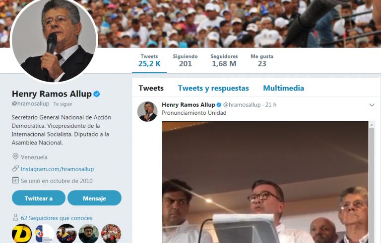 Hasta Henry Ramos Allup, quien en 2004 prometió públicamente la presentación de pruebas de un proceso fraudulento en el Referendo de ese año contra el Comandante Hugo Chávez (pero que nunca mostró), ha mantenido en un estado lacónico su cuenta en la red social.