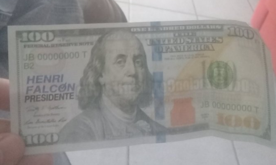 Esto es lo que está repartiendo el candidato Henri Falcón para promocionar su dolarización en Venezuela. Un falso billete de 100$ pic.twitter.com/Dghs0buZpI