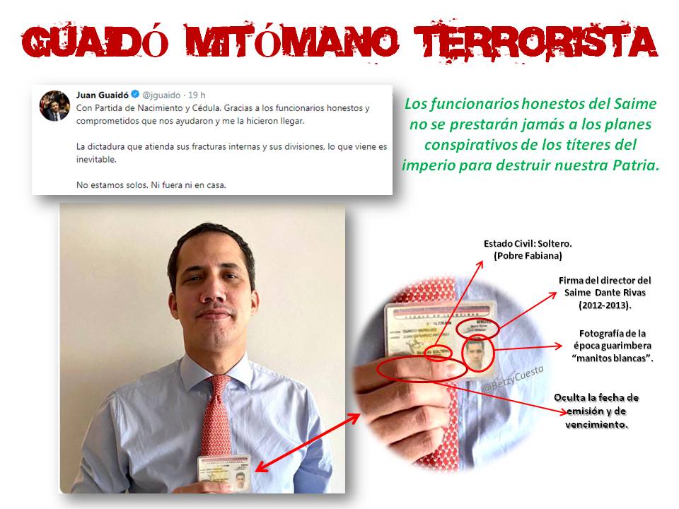 16 Feb. 2020 - Las mentiras del diputado opositor Juan Guaidó sobre el documento de identificación que le quitaron las autoridades venezolanas al llegar al país son cada día más notorias. Incluso ni sus propios seguidores las creen.