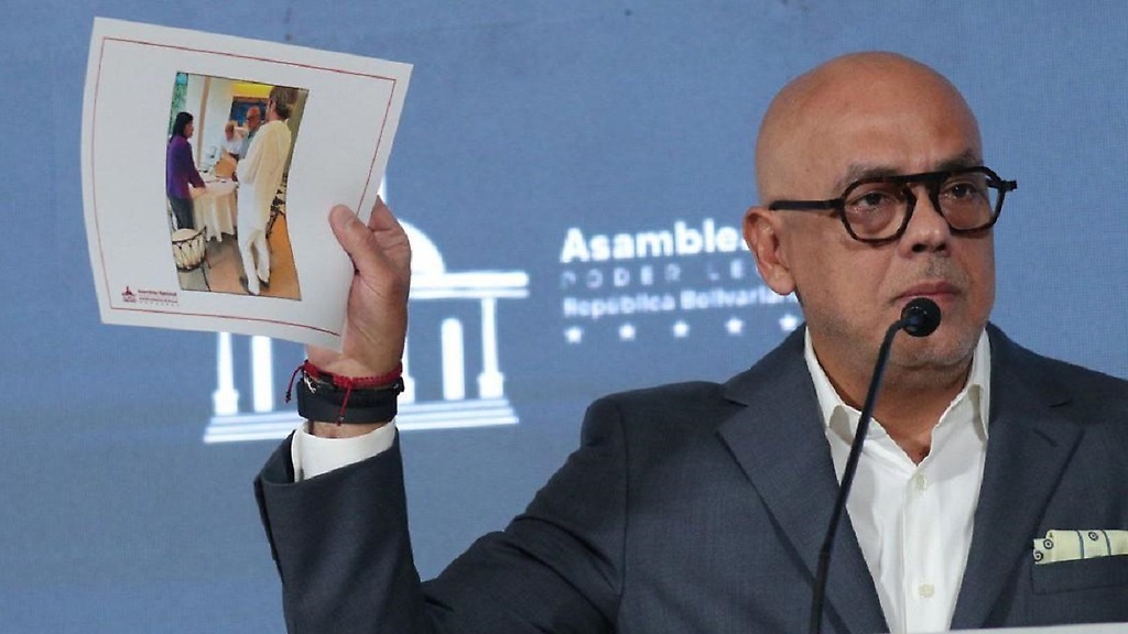 19-09-24.-El presidente de la Asamblea Nacional, Jorge Rodríguez, emplazó al excandidato presidencial Edmundo González Urrutia a desmentir la afirmación que hizo en cuanto haber firmado bajo coacción la carta que mostró la máxima autoridad del Parlamento y en la que el exaspirante acata la sentencia de la Sala Electoral del TSJ que ratificó los resultados del 28-J.