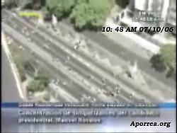 10: 45 AM del sábado 7 de octubre y la supuesta avalanchita es precisada por las cámaras de Venezolana de Televisión vista desde arriba y descubriendo como se trajeron gente del interior cuando supuestamente la invitación era para los habitantes de Caracas.