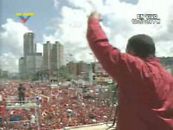 A la multitud, insistió Chávez, «recuerden que nos estamos enfrentando al imperio norteamericano, no a los currutacos de la oposición venezolana».