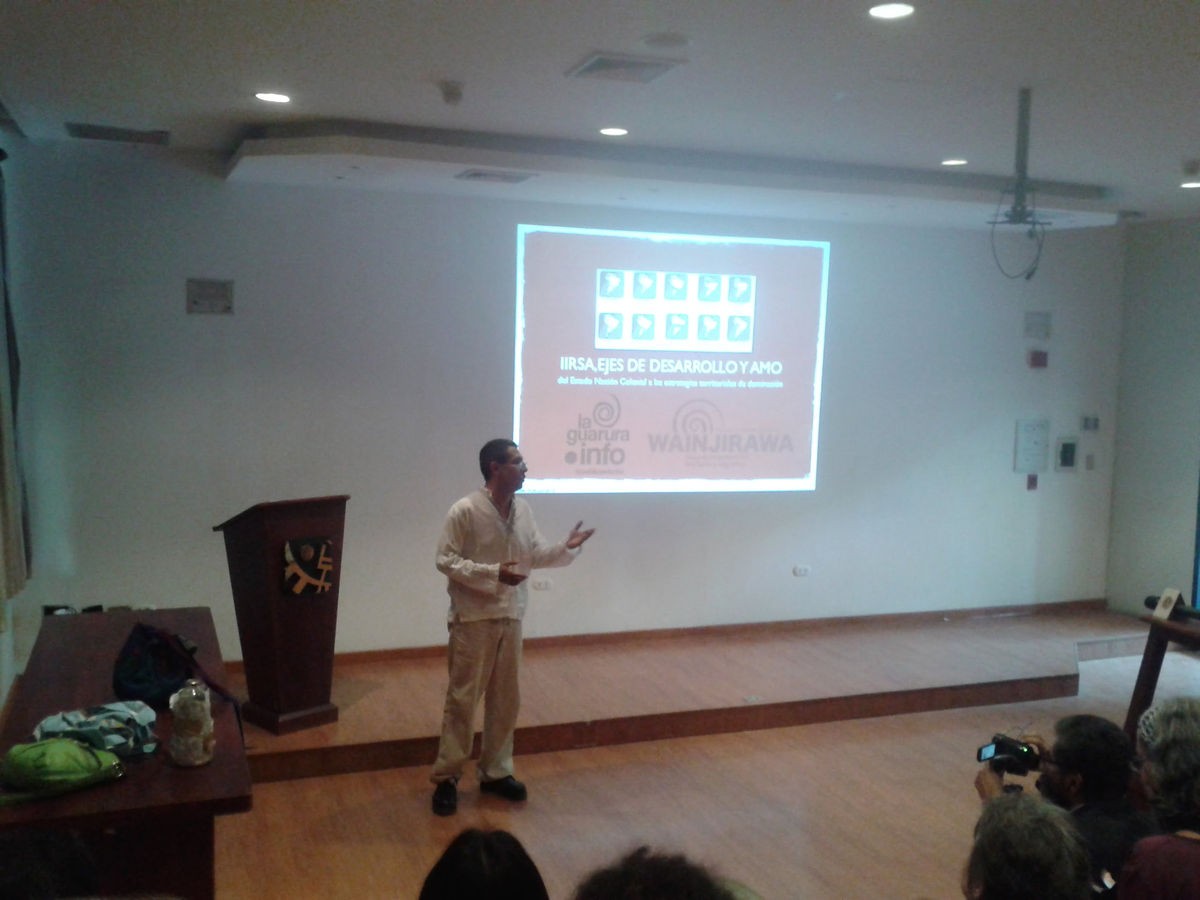 El activista Juan Carlos La Rosa inició el ciclo de ponencias contextualizando al Arco Minero del Orinoco en el escenario de la Iniciativa para la Integración de la Infraestructura Regional Suramericana (IIRSA), el cual pretendía promover proyectos de infraestructura en materia de transporte, energía y telecomunicaciones en América Latina desde la década anterior. Realizando un breve recuento de las complejidades históricas de este encuentro, La Rosa enfatizó que el IIRSA se trata del eje que aglomera los proyectos de desarrollo en la región, unificando a gobiernos de tendencias y corrientes disímiles en la extracción de la naturaleza. Por otra parte, el ponente cuestionó fuertemente el papel de Venezuela en materia energética, señalando las contradicciones anti-ecológicas del Plan de la Patria y afirmando que "Sin energía no hay IIRSA, y Venezuela es la principal aportadora de energía".