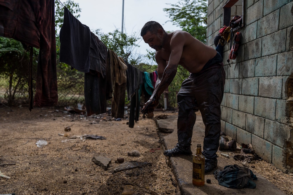 “El pescado viene lleno de petróleo“, lamenta, con la misma fatiga que le causa deshacerse de esta capa grasienta que solo sale con gasolina, un líquido que le quema de a poco la piel.