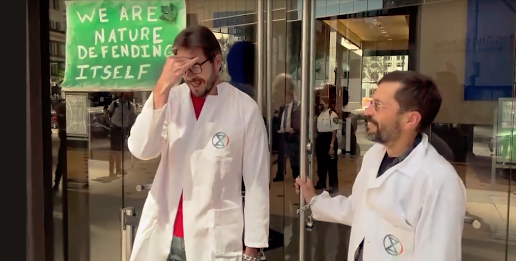 La protesta ocurrió en Chase como protesta por el financiamiento de combustibles fósiles por parte del banco, declaró el grupo Scientist Rebellion.