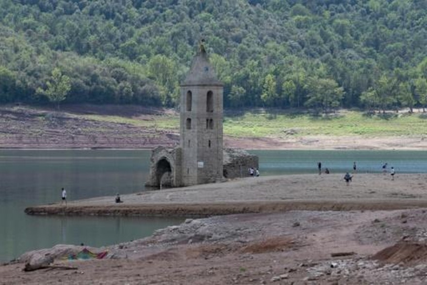 Un nivel tan bajo que la iglesia del viejo pueblo de Sant Romà de Sau, en Cataluña (noreste), sumergido por la construcción de la represa en los años 1960, emergió casi enteramente, cuando normalmente sólo se ve su campanario.