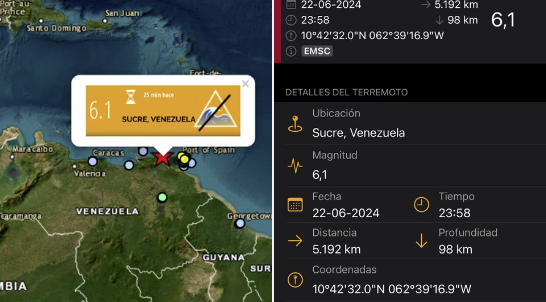 23-06-24.-La madrugada de este domingo 23 de junio, Caracas y varios estados de Venezuela experimentaron un sismo de magnitud 5,2. La Fundación Venezolana de Investigaciones Sismológicas (Funvisis) informó que el epicentro se localizó a 14 km al este de Irapa.