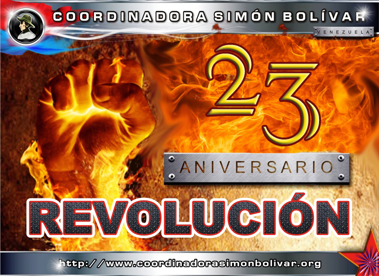 En este 23º aniversario de nuestra fundación, la cual se fraguó al calor del combate por los derechos del pueblo, y contra la tiranía y opresión de los gobiernos títeres del imperio estadounidense y de la burguesía, la Coordinadora Simón Bolívar rinde tributo a nuestro mártires más cercanos, los que se fueron sembrando en todos estos años de luchas: Entre muchos otros, a nuestros hermanos Freddy Parra, Ramón Ismael Ramos, Carlos Vielma, Juan Carlos Castillo, Dayana Carolina Azuaje, Gabriel Armas, Earles Gutiérrez, y Baltazar Ojeda Negretti, éste último como amigo y maestro, quien nos apoyó en los actos insurreccionales del 4 de febrero y del 27 de noviembre de 1992.