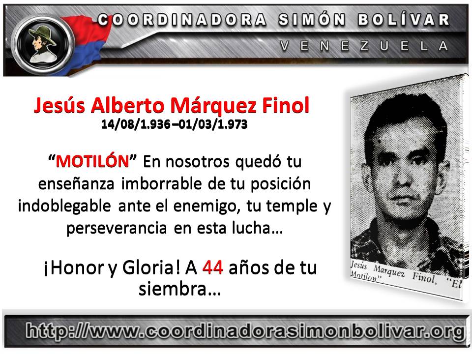 Nota: El texto base para esta nota fue publicado por: José Bonilla A. y Titulado: A los 44 años del asesinato de Jesús Alberto Márquez Finol "El Motilón"