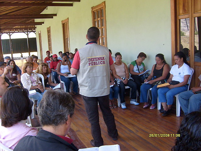 Asimismo, el Dr. Pereira, defensor público en el área de responsabilidad penal del adolescente, expuso: “la defensa pública es socialista, porque en el capitalismo cada quien se defiende como puede, es decir, si usted tiene un problema legal, búsquese su abogado, eso quiere decir que el que tiene dinero busca los mejores abogados y el que no tiene dinero tiene que defenderse a si mismo, ese es el sistema liberal, si usted no tiene dinero se fregó, no tiene derecho a abogado, no tiene derecho a ir al tribunal, entonces surge la defensa pública como medida para facilitarle a las personas el acceso a la justicia. En un principio surgió la defensa pública solo en el área penal, ahora gracias a la revolución la defensa publica se ha ampliado para llegar a otras áreas”.