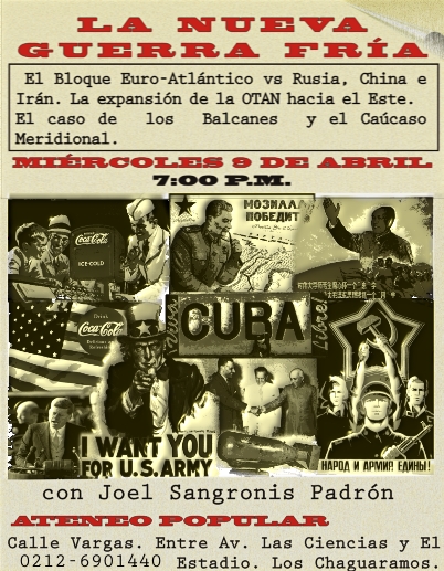 (Afiche) Conversatorio "La Nueva Guerra Fría" 9 Abril 7:00pm en el Ateneo Popular Los Chaguaramos