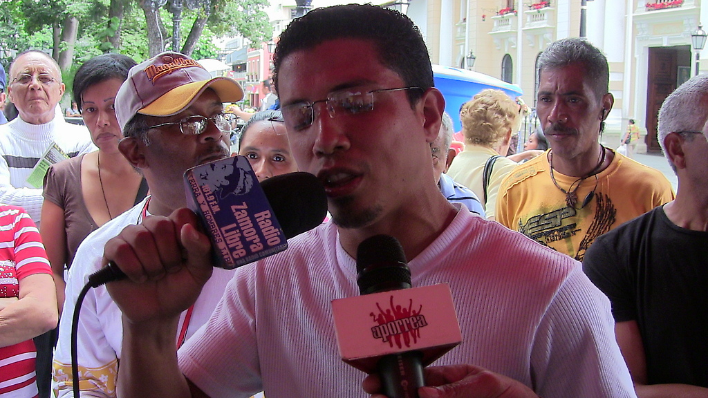 Martes, 18 de diciembre de 2012.- El Colectivo Somos Ambiente, las estaciones de radio Al Son del 23 y radio Zamora Libre, están dando un ejemplo de perseverancia al trasmitir todos los jueves a las 11.00 am desde la Esquina Caliente de la Plaza Bolívar un programa de radio impregnado de pueblo, donde se tratan temas de interés.