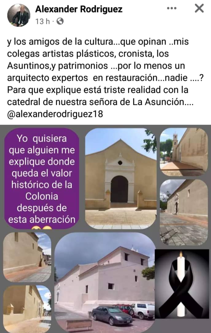 La restauración realizada a la Catedral de Nuestra Señora de la Asunción, debe llamar la atención al gentilicio margariteño y las autoridades del IPC, toda vez que quedó al descubierto la falta de conocimiento especializado y en general del descuido observado en el otorgamiento del estudio con que fue tratada la Catedral de la Asunción, convirtiéndose en el trasfondo de un irreversible daño.