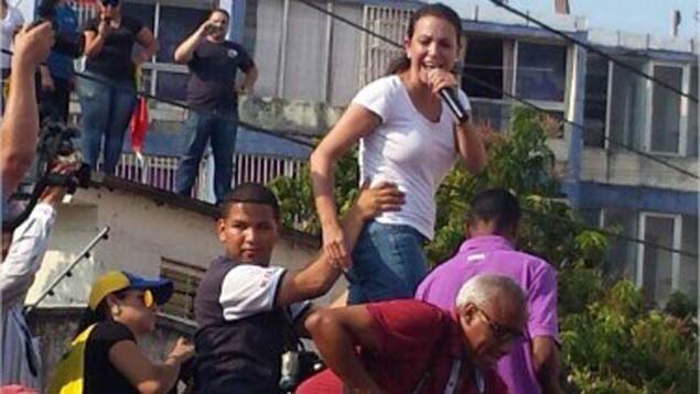 La señorita Machado estuvo en Ciudad Bolívar y Puerto Ordaz tratando de movilizar a sus fuerzas de oposición para generar posteriores guarimbas.