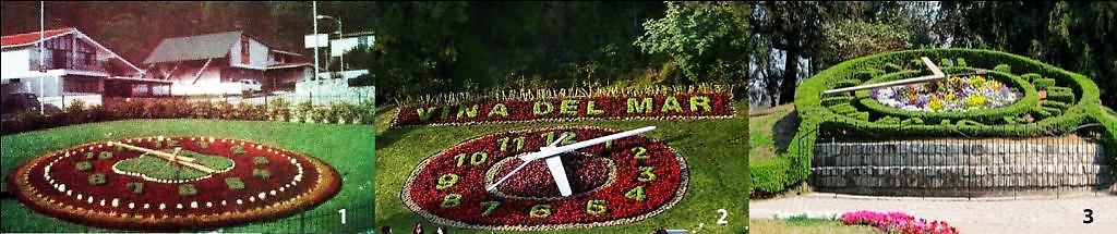 Algunos Relojes de Flores de renombre en el continente; (1) Reloj del Parque Beethoven de Mérida (1970); (2) reloj de la ciudad Viña del Mar, Chile y (3) el reloj de la ciudad de Tucumán, Argentina. (Composición RCM/ Aporrea.org)